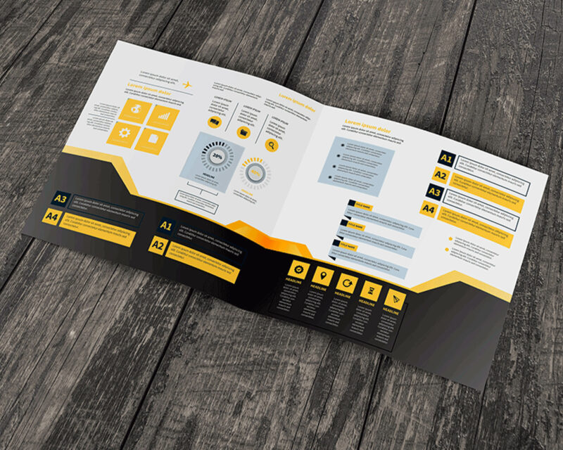 Dípticos o trípticos de tamaños A5 y A4, con un gramaje de 170g/m2 a todo color por ambas caras a elegir entre acabado mate o brillante.